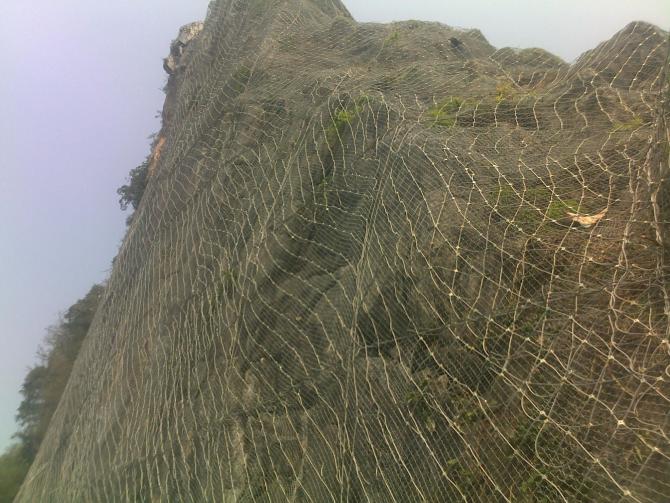 我們先對提出這個(gè)疑問(wèn)的人給予充分的肯定,提出問(wèn)題說(shuō)明對工程負責,但是這種顧慮是完全可以化解的。主動(dòng)邊坡防護網(wǎng)每片鋼絲繩網(wǎng)的尺寸一般是4米*4米,只要把支撐繩固定好后,通過(guò)縫合繩將每片鋼絲繩網(wǎng)縫合起來(lái)。即使再陡峭的邊坡也可以完美的施工完成。如果遇到那種地形非常復雜的我們可以采用縮小每片鋼絲繩網(wǎng)的大小,把每片縮減到2米*2米甚至更小,讓鋼絲繩網(wǎng)更加微;,安裝更加靈活。