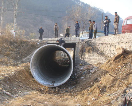 金屬波紋涵管應用于公路養護工程時(shí),待涵身及洞口主體部件運至施工現場(chǎng)后,施工單位才能開(kāi)始拆除舊涵洞的工作,在拆除舊涵洞的同時(shí),抓緊基礎材料的備料工作,備料完成,并經(jīng)檢驗合格后方可進(jìn)行基坑的開(kāi)挖工作。金屬波紋涵管應用于新建公路工程時(shí),在定購涵管的同時(shí)可抓緊基礎材料的備料和基坑的開(kāi)挖工作。