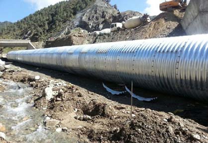 鋼波紋管由于其軸向波紋的存在,使得徑向承載力大大提高,同時(shí)由于其軸向波紋的存在,使其具有較好的橫向變形補償特性,因而具有較好的不均勻沉降變形的適應能力。但沉降值也要在一定范圍內,根據經(jīng)驗值,涵洞沉降值在100厘米內。所以遇到特殊地基需要加固處理,尤其是軟土地基。