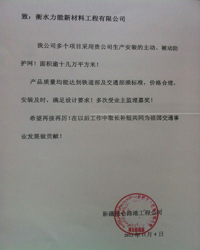 我公司多個(gè)項目采用貴公司生產(chǎn)安裝的主動(dòng)、被動(dòng)邊坡防護網(wǎng)!面積逾十幾萬(wàn)平方米!