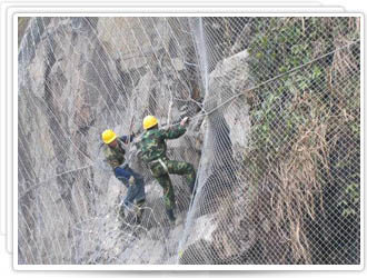 通過(guò)鋼筋(可施加預應力)和/或鋼絲繩錨桿(有邊沿支撐繩時(shí)采用)、專(zhuān)用錨墊板以及必要時(shí)的邊沿支撐繩等固定方式,將作為系統主要構成的柔性防護網(wǎng)覆蓋在有潛在地質(zhì)災害的坡面上,從而實(shí)現其防護目的。適用于具有溜坍、崩塌、淺層滑動(dòng)、危巖落石等潛在地質(zhì)災害的土質(zhì)或巖石邊坡加固和防護 。主要構成錨 桿:一般采用一端(外露段)帶加工螺紋的Φ25/28普通螺紋鋼筋錨桿,也可采用Φ25精軋螺紋鋼筋(如GEWI錨桿),并根據需要進(jìn)行熱鍍鋅防腐處理,成孔困難時(shí)可采用自進(jìn)式中空錨桿;