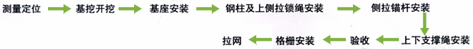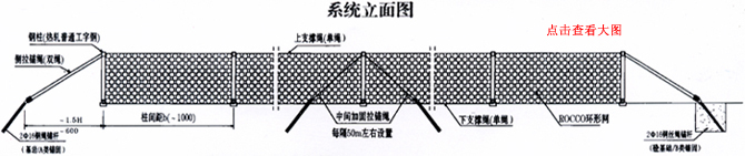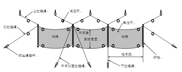 然后就可以安裝鋼絲繩網(wǎng)了,將鋼絲繩網(wǎng)通過(guò)縫合繩縫合在上下支撐繩與立柱上。然后進(jìn)行最后的調試工作,關(guān)于菱形被動(dòng)柔性防護網(wǎng)的安裝就基本完成了。